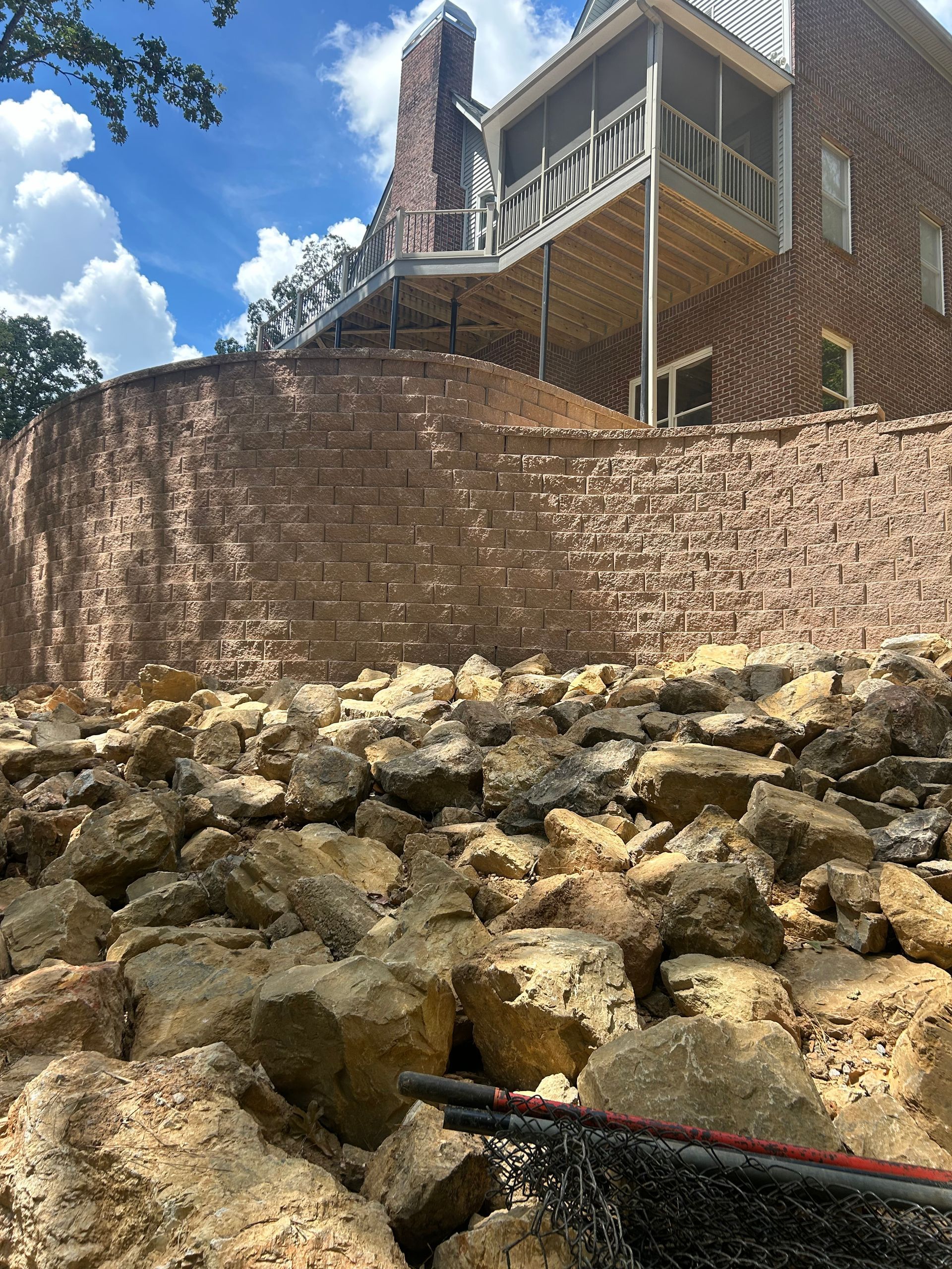 If you want to prevent things like oil from sliding and eroding, you need a retaining wall, which is a strong and stable wall or barrier construction with that exact purpose. A retaining wall's primary purpose is to stop soil from pushing on it. Though retaining walls are a fantastic investment that may greatly increase the market value of your home, there is some information you should know before you get started. Retaining wall solutions come in a wide variety of shapes, sizes, designs, and materials. We are here to hold your hand every step of the way and make you feel as though all of the daunting factors you need to consider are the major reason why it is so important that you choose our team of skilled contractors who specialize in this niche art.